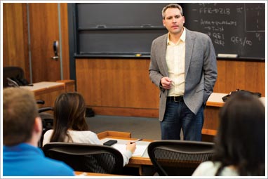 “The way that I approach my classes is experiential in nature,” says Economics Professor Aaron Jackson, winner of Bentley’s 2015 Innovation in Teaching award. “So I not only teach the theories that come out of the textbooks but how to apply them to what we see in the real world.”