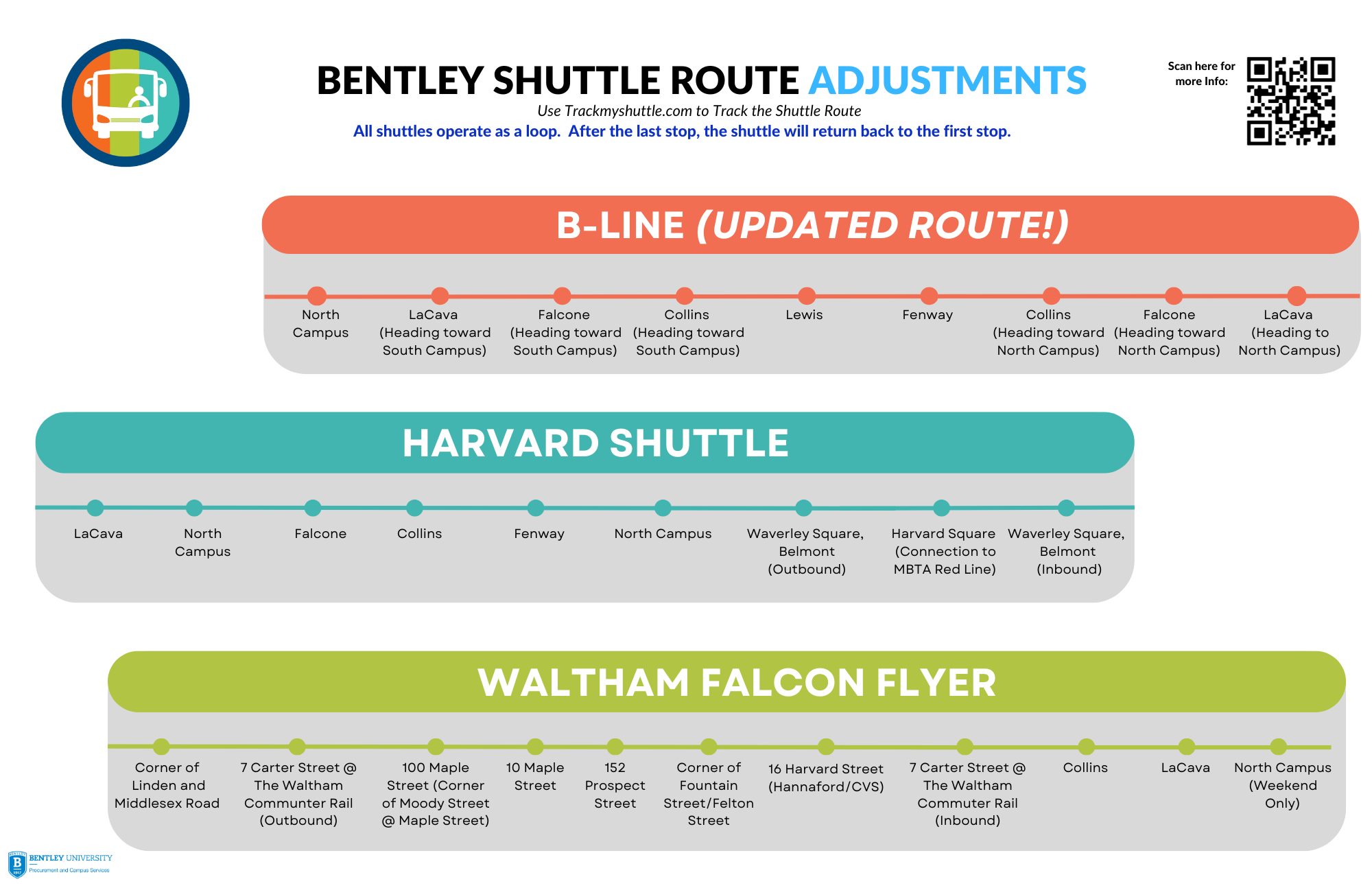 The Bentley Shuttles are a great resource for exploring the local area, as well as getting around campus. With three routes that cover campus, Waltham, Waverly Square (Belmont) and Harvard Square (Cambridge), you also have easy access to MBTA buses, subway, and commuter rail lines. You can catch all three lines at the LaCava Shuttle Hub.